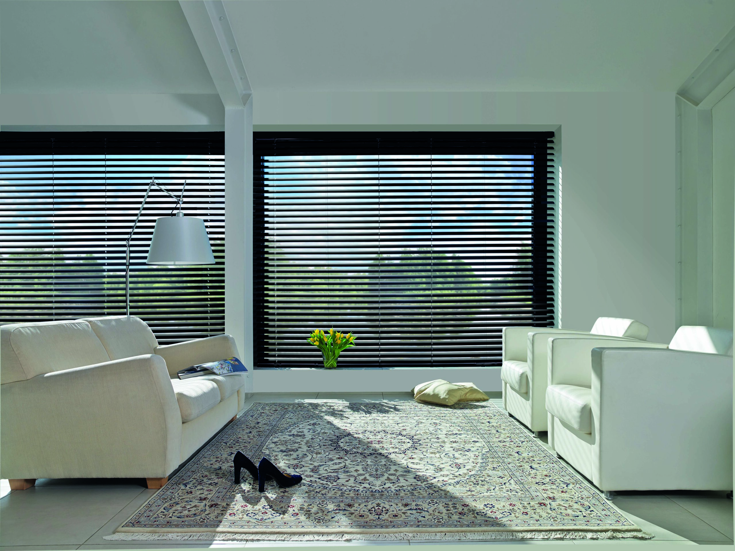 Aluminium binnenjaloezieën van LivingLux brengen licht, balans en modern design samen in één strak systeem.